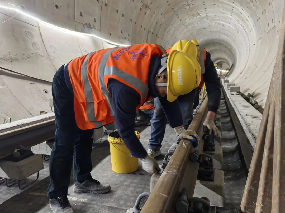 面对工期紧、任务重、轨行区交叉作业多等挑战,为高质量实现节点目标,市交通建设管理公司牵头抓总,强化调度,坚持精细化管理思路,系统构建施工保障体系:一是建立铺轨进度周调度机制,将“轨通”大节点倒排分解至日施工计划,以日保周、以周保月,层层压实责任,确保进度可控;二是强化现场安全管控,严格落实作业计划审批确认、作业面摄像头全覆盖等安全管理硬措施,对起重吊装、临时用电、轨行区管理等关键环节实行每日巡查、闭环整改,保障施工安全高效;三是加强资源统筹调度,依托智能化监控平台实时归集施工数据,动态调整人、机、料配置,高效解决交叉作业、工序衔接等现场问题,确保铺轨作业平稳推进。